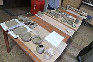 10月22日、益子町の長谷川陶苑にて伝統文化にふれる研修会を開催した。今回は益子焼(手びねり)体験を行った。参加者は黙々と作業していた。初めてという会員もいて「こういう機会があってよかった」「焼き上がりがどうなるか心配」…