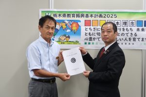 9月26日(木)に栃木県議会議長・副議長に教育予算の要望書を提出した。 教育予算要望についての説明を行い、現場の様子や予算に関する課題について伝えた。 議長、副議長も熱心に説明を聞いてくださり、現場の環境等について意見交…