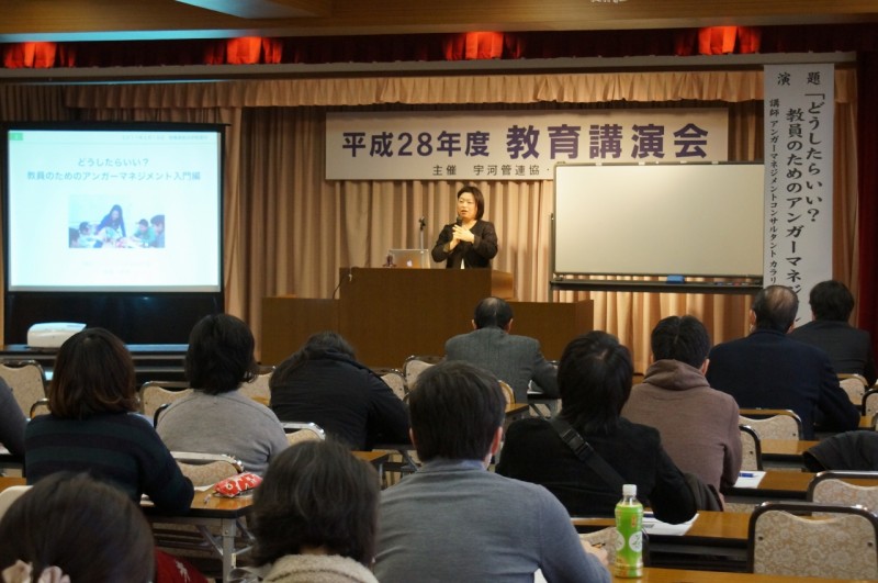 2月18日(土)、コンセーレを会場に宇河連協・管協主催の教育講演会が開催され、栃教協からは、吉田浩之会長が参加した。講師にアンガーマネジメントコンサルタントカラリア代表の斎藤美華氏をお迎えし、「どうしたらいい?教員のためのアンガーマネージメント入門編」と題してご講話をいただいた。斎藤美華先生のご講演は、学校現場ですぐにでも実践できるような内容であり、とても有意義な研修会となった。