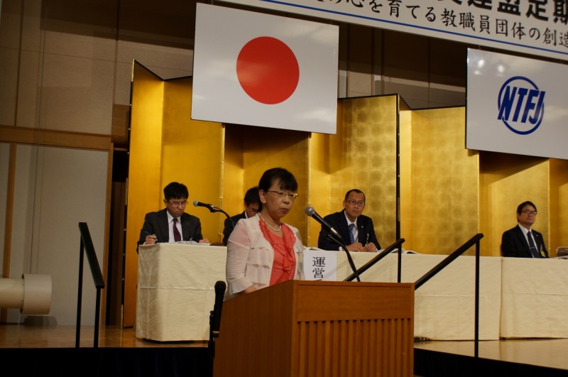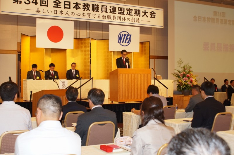 6月11日(日)、都市センターホテル(東京)において、栃教協が加盟する全国組織である全日本教職員連盟(全日教連)の第34回定期大会が開催された。栃教協からは、副会長・理事をはじめ、連協や単位教協の役員、総勢51名の会員が参加した。 大会では、冒頭、郡司隆文全日教連委員長は、「教職員が、その本来の教育専門職としての使命を発揮し、我が国の未来を担う子供たちが、美しい日本人の心と高い志をもち、豊かな人生を歩んでいけるよう前進していきたい。」と決意を表明した。続いて、昨年度決算、今年度予算、全日教連の運動方針、新規加盟団体承認の件などが審議された。今年度の運動方針の中で、具体的な取組として各専門部からの報告がなされた。栃教協からは、事務職員部長の高橋純子副会長、養護教員部長の瀬戸久子理事が、それぞれの部の活動方針を発表した。また、栃教協吉田浩之元会長が全日教連から今までの功績に対し表彰された。