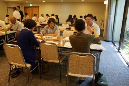 7月8日(土)、コンセーレにて事務局長研修会を開催した。この研修会は、各単位教協及び連協の事務局長さんを対象に開催しているもので、主に対市町交渉の進め方について研修している。また、6つのグループに分かれ、各単位教協・連協の活動についての問題点や今年度の活動について話し合い、より活発な活動が行われるよう事務局長さんへの教協活動の理解を促進している。グループ討議においては、どのグループも積極的に意見を交わし、内容の濃い研修会となった。