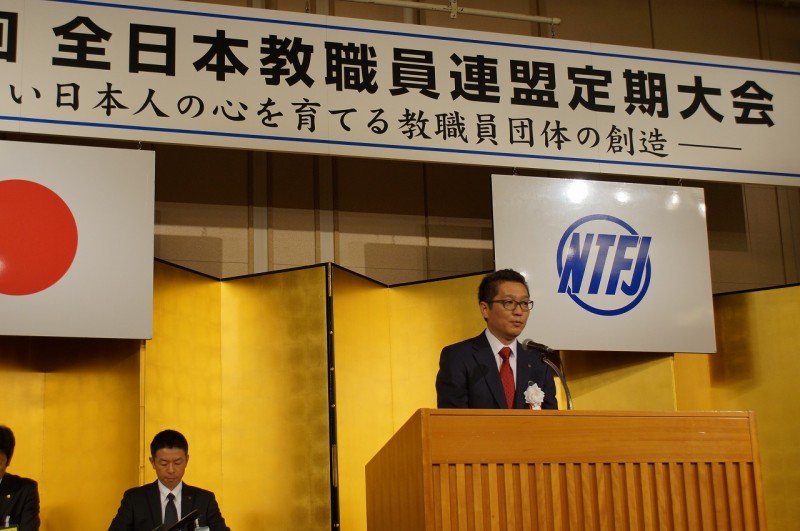 6月10日(日)、都市センターホテル(東京)において、栃教協が加盟する全国組織である全日本教職員連盟(全日教連)の第35回定期大会が開催された。栃教協からは、副会長・理事をはじめ、連協や単位教協の役員、総勢47名の会員が参加した。 大会では、冒頭、郡司隆文全日教連委員長は、「私たち全日教連は、『美しい日本人の心を育てる』を基本理念に自己研鑽に励み、使命感をもって児童生徒の教育に当たってきた。今後も国民の負託に応える教育を確立していきたい。」と決意を表明した。続いて、昨年度決算、今年度予算、運動方針などが審議された。 各専門部からの報告では、学校事務職員部の高橋純子部長、養護教員部の瀬戸久子部長、栄養教諭・学校栄養職員部の大島久美子部長らが、それぞれの立場から、定数改善や待遇改善について国に要望していく旨を説明した。