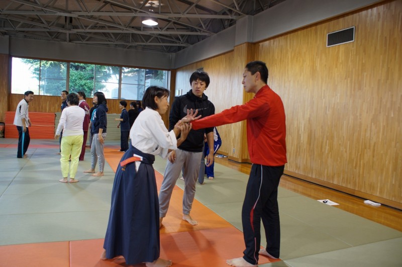 10月27日(土)、宇都宮市河内体育館格技場において、護身術講座(合氣道)を開催した。この講座は、万が一の事態に遭遇した場合、自分の身は自分で守ることができるようにすることを目的に、今年度から新規に開催した実技研修である。講師には、武産(たけむす)合氣道会宇都宮支部長の山越克雄氏を始めとする7名の先生方をお招きし、2時間にわたりご指導いただいた。約30名の参加者は、心地よい汗を流しながら護身術の技を学ぶことができたので、大変有意義な研修会となった。