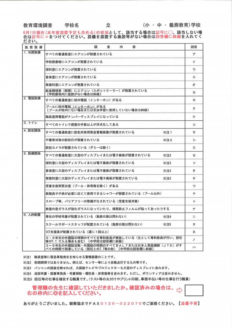 栃管協と合同で実施している教育環境調査が、本日締め切りとなります。