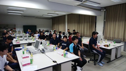 ニュースポーツ研修会では、ディスコンを行った。ディスコンは、小さい平らな的を投げ、その的に向かって手のひら大のディスクを投げ合い、的に最も近づけたチームの得点となるスポーツである。身体や体力差がでにくいので、どの世代でも楽しめ、また、作戦を立てるのに自然とチームで会話が生まれるので学校において体育や学級活動、教職員同士や親子レクで活動として取り組むと良いと感じた。