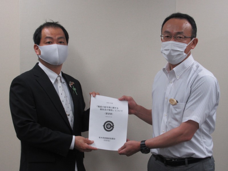 7月12日、県人事委員会に対して令和3年度「職員の給与等に関する報告及び勧告」についての要望書を提出した。要望内容に関しては、栃教協新聞7月号(7月下旬発行)でご確認いただきたい。