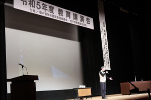 様々な戦地や災害被災地に赴き、現地の方々との交流から得た豊かな経験談を話された。戦争の悲惨さと被災された方々の心の強さを雄弁される姿に、平和とは何か、人間の強さや弱さとは何かを考える契機となった。平和教育や道徳などの授業づくりに大いに参考となる講演会となった。今後も本県の子供たちへの教育のため、働く教職員のため学び多き教育講演会の企画・運営に邁進していく。