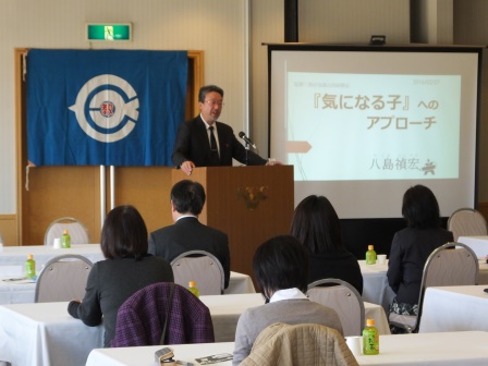 2月27日(土)、烏山城カントリークラブにて、那須連協・塩谷連協・南那須連協の三地区の役員の皆様が一堂に会し、塩那三地区役員合同研修会が開催された。講師に、作新学院小学部教諭で近畿大学豊岡短期大学非常勤講師である八島禎宏氏をお招きし、「気になる子」へのアプローチ-教師としての経験を活かすアプローチ術-という演題でご講演頂いた。通常学級にもたくさんの「気になる子」がいるが、その「気になる子」たちへのアプローチの仕方を具体例を交えながら丁寧に説明して頂き、今後の教員生活に活かせる有意義な研修会となった。