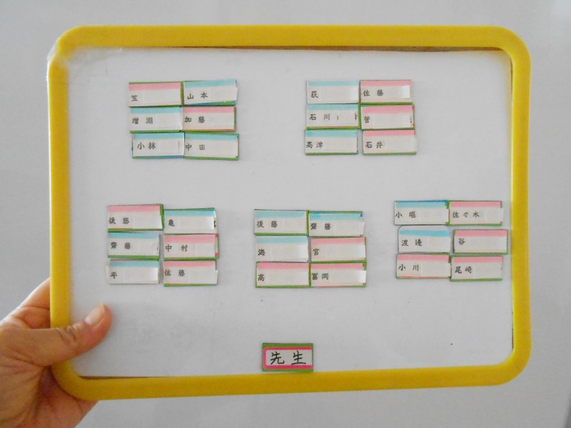 2 数㎝程度のマグネットシートに学級の児童生徒の氏名を1人ずつ貼る。