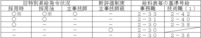 主事技師級(※)、主任、補佐級・・・各2号給 係長級・・・3号給